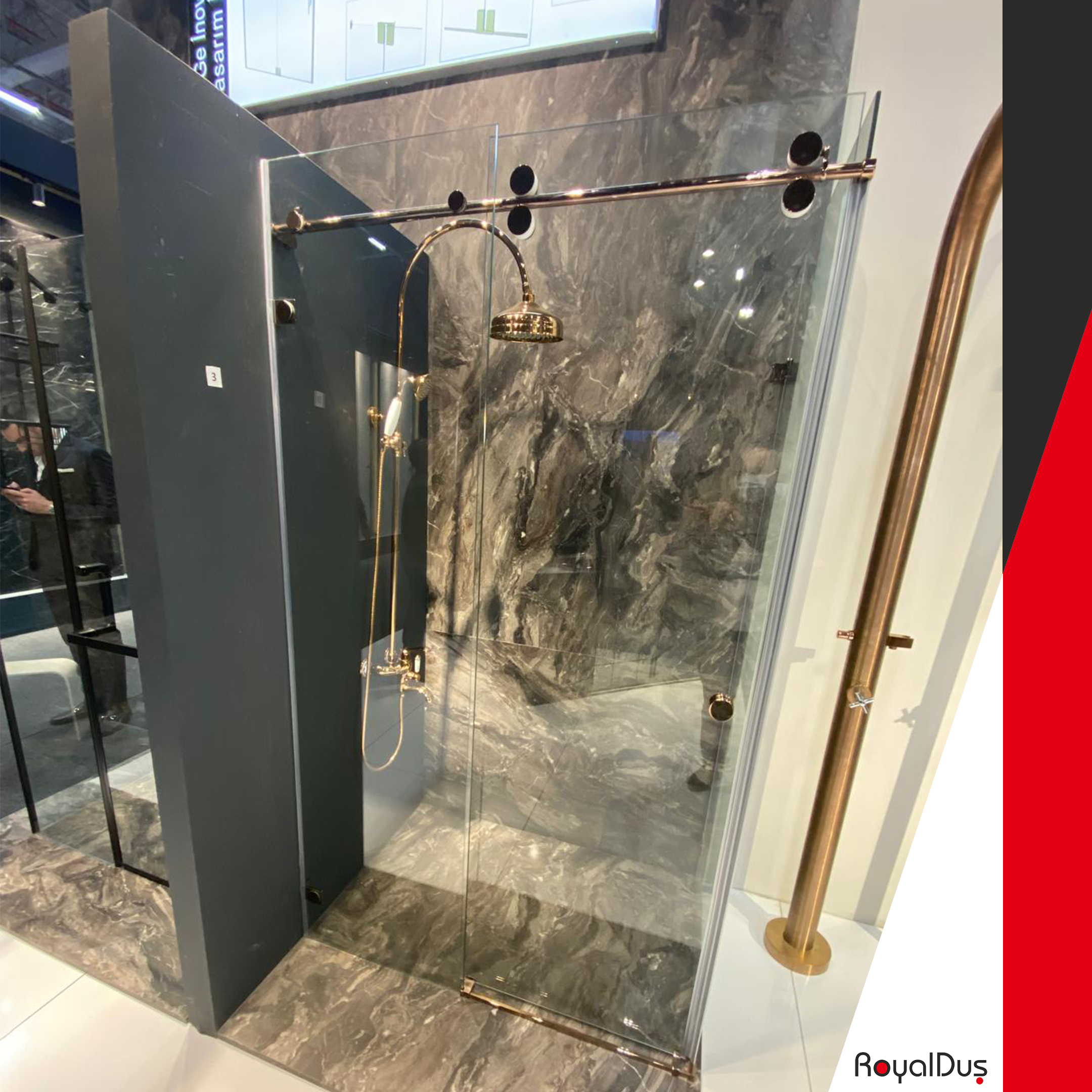 Royal Duş A.Ş.’nin üretimi olan modeller, banyolara modern ve şık bir hava katarken, profil ve aksesuar seçenekleri ile estetiği tamamlar. Siyah, krom, gold, rose veya bakır renk profiller ile banyolar daha sofistike görünür. Extra clear, reflekte veya nervürlü cam alternatifleri ile ışık dengeli bir şekilde dağıtılır, alan daha ferah ve geniş hissedilir.